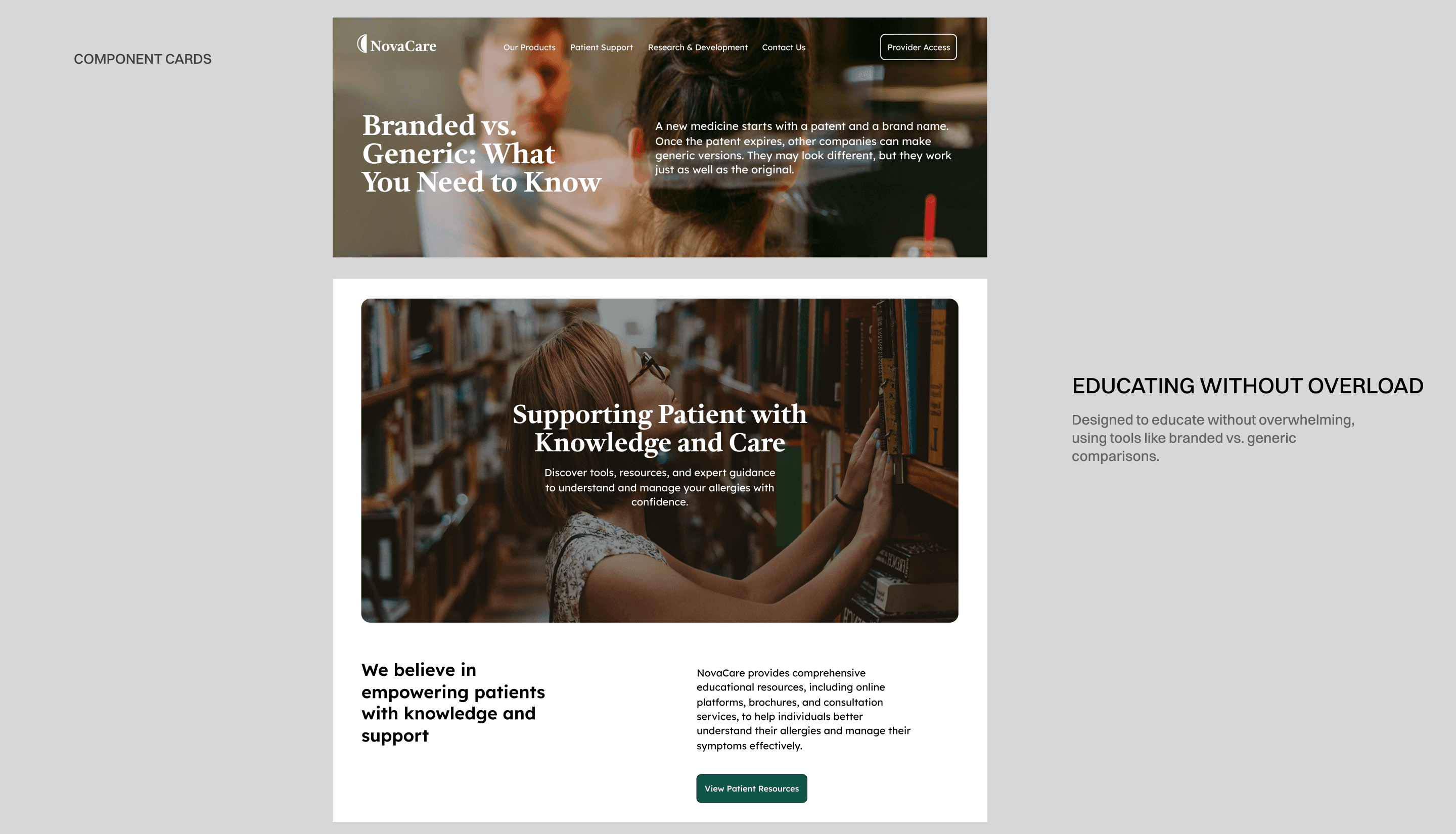 We built trust by removing marketing-heavy visuals and highlighting clear credible content. Educational information was moved to the top of product pages so users quickly found what they needed. Streamlined navigation made the site intuitive and accessible showing that clarity and usability build lasting trust.